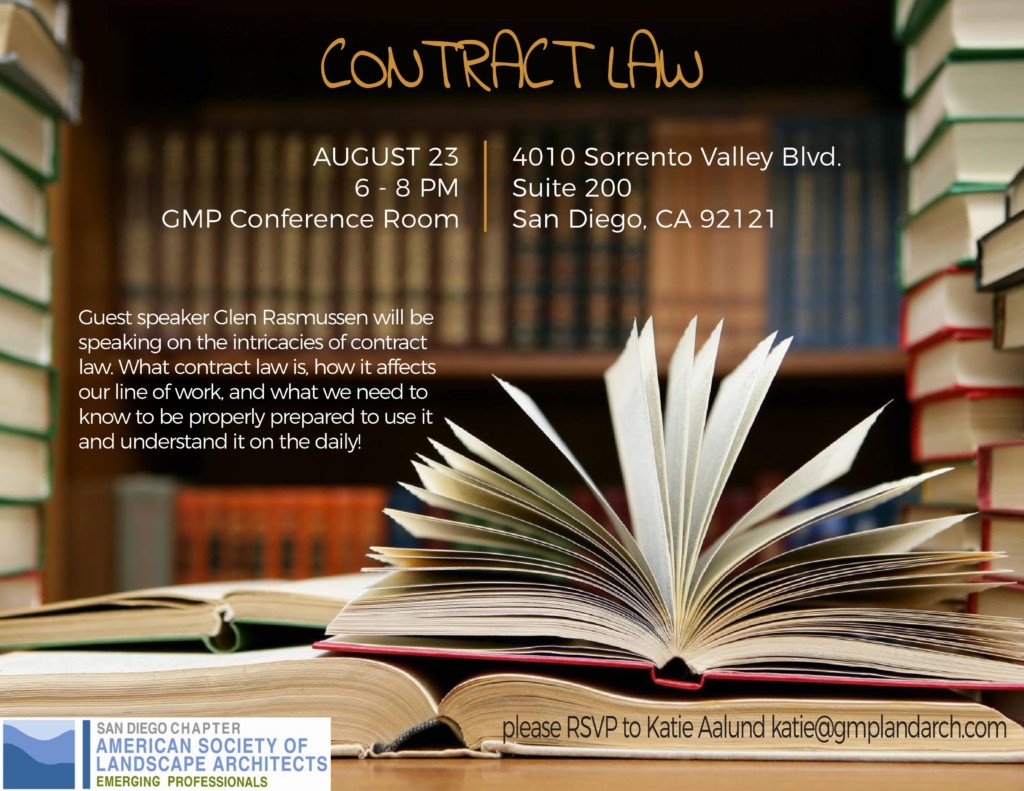 Our guest speaker, Glen Rassmussen, will discuss contract law: what we need to know about it as landscape architects, how it affects our line of work, and what we need to do to handle it competently and efficiently on a daily basis!