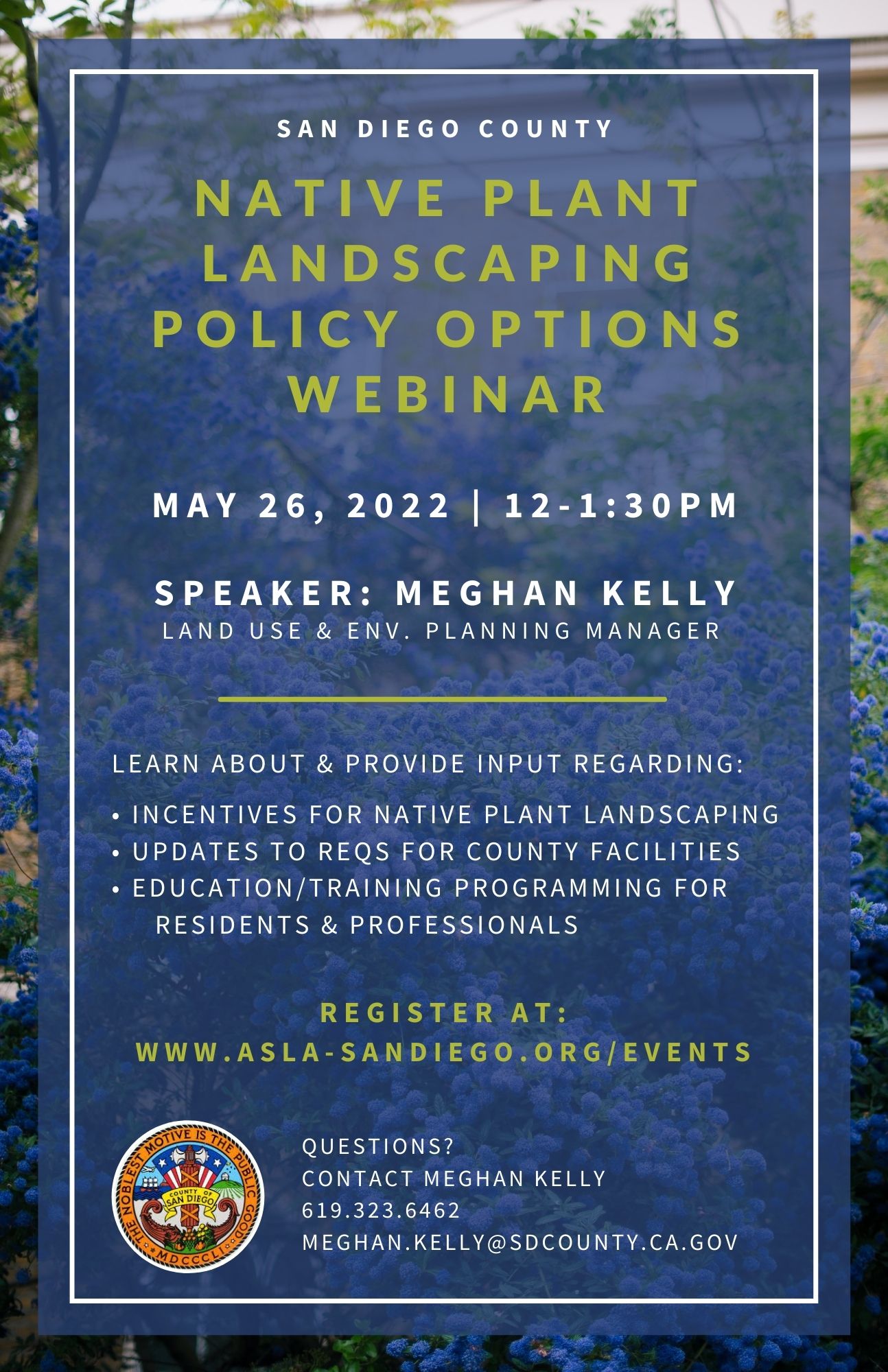 Questions? Contact Meghan Kelly at 619.323.6462 | Meghan.Kelly@sdcounty.ca.gov