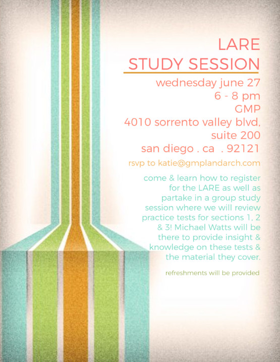 GMP Landscape Architects 4010 Sorrento Valley Blvd, Suite 200, San Diego, CALARE Review Study Session Wednesday, June 27 - 6 to 8 pm Gillespie Moody Patterson (GMP) 4010 Sorrento Valley Blvd., Ste. 200 San Diego, California 92121 RSVP to Katie at Katie@gmplandarch.com At this meeting we [...]