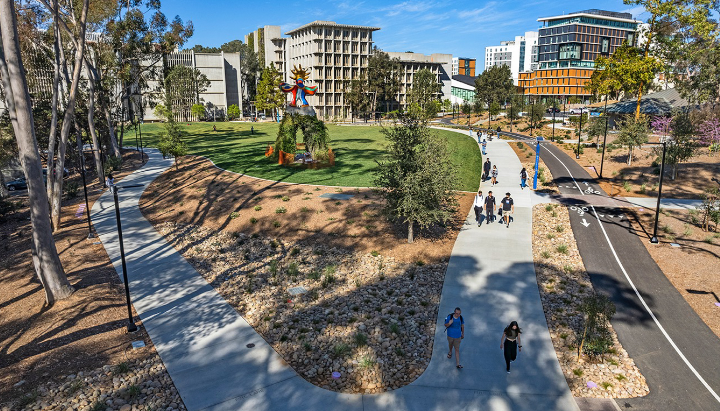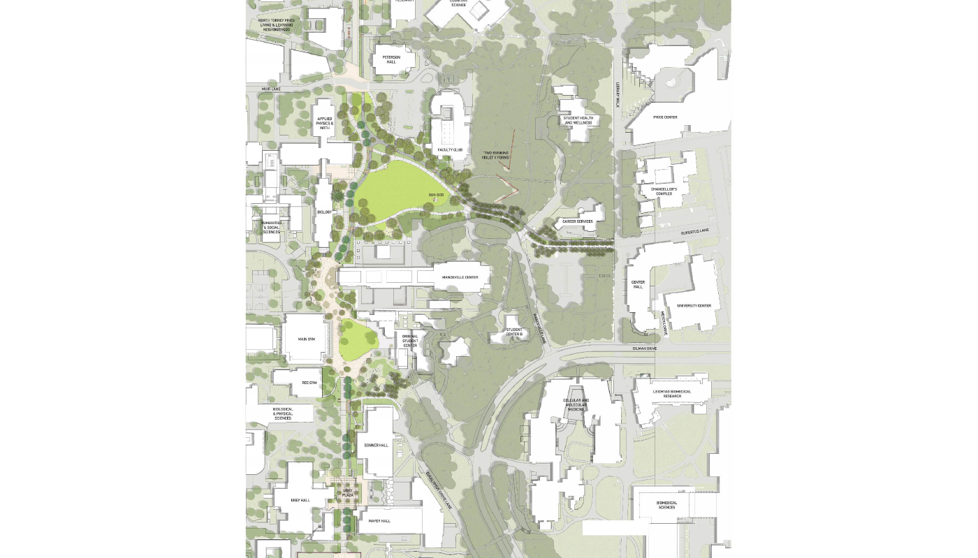 This project does a great job in accommodating both pedestrian and non-motorized circulation within a very busy campus.