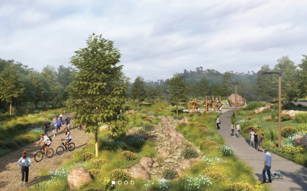 The heart of the project is a new 80-acre regional river park that will feature passive recreational amenities such as walking and hiking trails, observation decks, interpretive education, and a significant expansion of the San Diego River Trail.